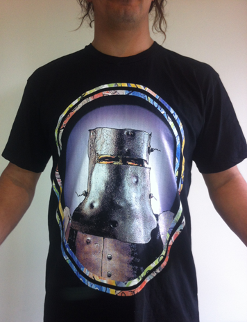 Look closely at the print, look through the gap in the helmet.